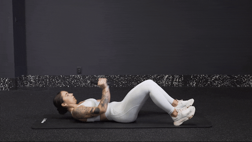 - Εκτέλεση: Εκπνεύστε και ενεργοποιείστε τους κοιλιακούς σας μύες, καθώς σηκώνετε και λυγίζετε το αριστερό σας πόδι. Ταυτόχρονα, σηκώνετε το δεξί σας χέρι και φέρνετε την παλάμη σας πιο κοντά στο αριστερό σας πόδι. Στη συνέχεια, εισπνεύσετε και επιστρέψτε στην αρχική σας θέση. Επαναλάβετε την ίδια κίνηση από την άλλη πλευρά.
